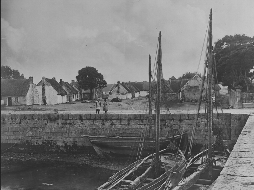 Although the Castle and the mansions of the Burkes and the Joyces have fallen into ruin, there are Spanish patios, doorways, dripstones and archways, and even Saracenic windows, to be seen in the tangle of crooked streets, if one has the patience to look for them. More obvious than these peculiarities of ancient domestic architecture are the levels of colour and a gaiety of manner and spirits, which remain as unerring signs of Spanish infusion of blood. There are Spanish faces in the back streets, and Spanish voices are heard in the fish markets. Poverty is as real here as in other Irish towns, but its pathos is less moving because an instinctive effort is made either to hide it or take a cheerful view of it. There are flowers in doorways and windows; the cottages have touches of bright colours.