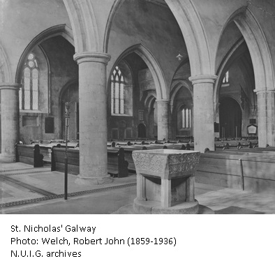 The houses are also painted or kalsomined in pink, blue, yellow and white, so that there is a display of colour even in a quiet street like Prospect Hill – leading into green meadows. Neglected as the old houses with their central courts and wide entries and stairways have been, Galway still contains many of the distinctive features of a Spanish town.