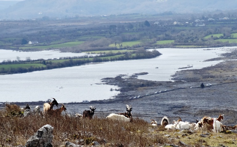 They are situated within a short ride of the thriving town of Gort, in the direction of Kinvarra, at a place called Caherglissance, upon the property of Mrs. Blair. The whole surface of the country appears to be covered with immense fragments of limestone; upon the removal of which very true soil is sometimes found; but more frequently great quarries of limestone will be discovered under the surface. The limestone is brittle and light coloured, and the soil unproductive and barren. In the distance the Kinvarra mountains rise, and give to the landscape a graceful termination. The mines are situated upon a flat surface of country which abounds with turloughs, formed by the subterranean river of Gort. This river flows out of the lake of Lough Cooter, and after proceeding for about a quarter of a mile, falls into a natural cavern of limestone rock at Rinditin where it disappears for about a mile, its course being clearly traced through several holes like wells, several of them of great depth, at the bottom of which water is clearly heard, by dropping a stone into the holes. The river again makes its appearance at Canahoun, where it flows out of a natural and picturesque arch of rock, and after passing through the town of Gort, turning in its progress several large mills, it alternately sinks and rises till it finally joins the sea at Kinvarra, a distance of seven miles, the water percolating through the sand before high water mark. Two of these turloughs are situated close to the mines, and afford an abundant supply of water.