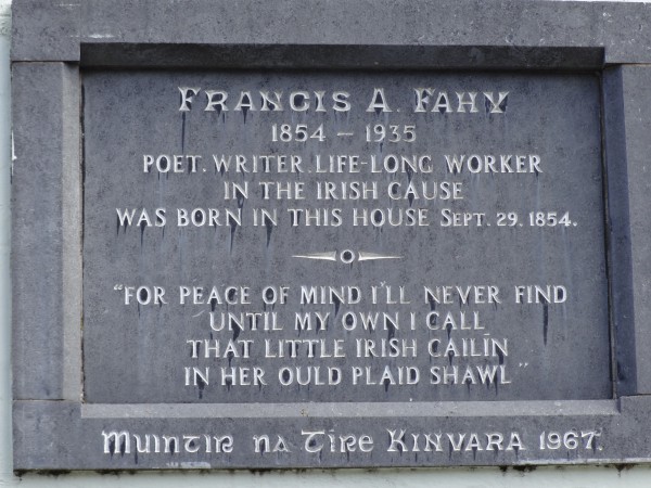 Having talked of Francis Fahy, the poet of Kinvara, in Corofin I find on my return more talk of him in the handsome souvenir programme put out for the opening of Faitche Padraic, the handsome new G.A.A. sports grounds in Kinvara.
