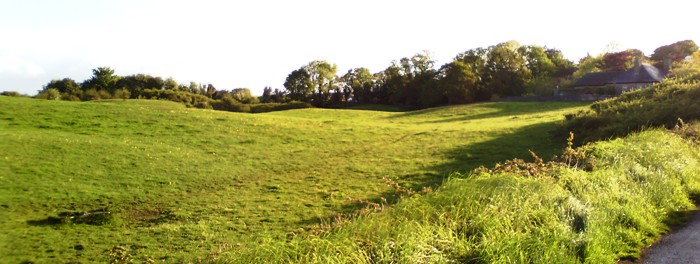 The history of Ireland may be read in its ruins, and we have them here go leor, such as cromlechs of unwritten age, like those at Doire-da-both, now Chevy Chase, near Gort, said to be one of the places where Diarmuid and Grainne fled from the wrath of Fionn MacCumhail; cahers or stone forts like that at Garryland, with walls 194 yards round, 13 feet broad and 13 to 18 feet high, enclosing a number of ruins and early Christian remains like Kilmacduagh, the most varied groups of ecclesiastical ruins in Ireland, comprising a cathedral 100 feet long, an abbey church, with lovely arches and moulding, as fresh as modern work, several small churches, and a perfect Round Tower, 100 feet high, and 50 in circumference, said to be one of 35 erected by Brian Borumhe to check the inroads of the Danes.