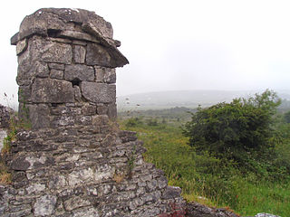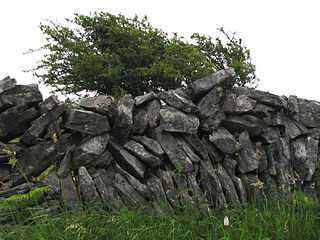 I threw to them a few halfpence, and looked back still on the glittering bay, and thought that there was a freshness and softness in the westerly breeze I had never felt before. We ascended a long hill and I walked along the footpath which borders the road. On that side the stone wall is lofty and well-built, enclosing for more than a mile a gentleman’s mansion and grounds, and on the opposite side the wall of mason work evidently enclosed his property. At the gap ways I could see that the country is quite devoid of trees, and divided by walls of loose stones. Here and there are cabins, single or in clusters; these too are of stone and thatched, but many had been unroofed and only the walls with their two high gable ends remain. This form of ruin is the most striking feature of the country, and sometimes the bank which surrounded the garden and field remains, with here and there one ash of the hedgerow, and a single bush in the garden.