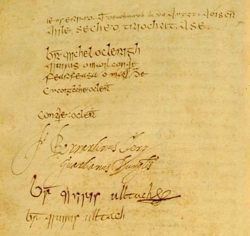 A.D. 1588. Owen Mantach, son of Edmond, son of Flann, son of Conor O’Heyne, Lord of Hy-Fiachrach Aidhne, died and his son, Hugh Boy, was elected to his place. Annals of the Four Masters.