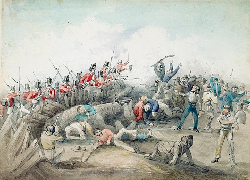 Eureka stockade battle by J. B. Henderson Watercolour 1854 State Library of NSW. Wikimedia Commons