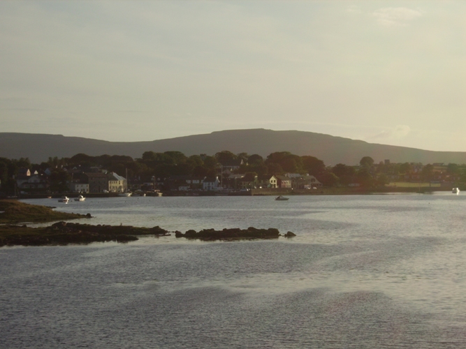 New Quay is encircled on the south side by the rugged range of the Burren Mountains showing the ancient ruins of Corcumroe Abbey, Aughmama Abbey, Mucknish castle, and other castellated ruins along Bellharbour Bay, with the villages of Curranroe, Kinvara, Bellharbour, Ballyvaughan and Finavara, in the immediate vicinity. The air at this district and its surrounds, filled with the ozone and saline of the salt sea of the Atlantic Ocean infuses new life and vigour into one accustomed to living in inland places where the air is entirely devoid of those health giving properties and less embracing.