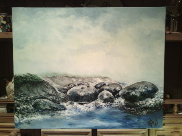 Oh, grey and bloak by shore and creek, the rugged rocks abound,