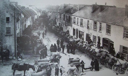 The rev. Chairman having observed in the first instance that having passed through the ordeal consequent on the famines of 1947, ’48 and ’49 in this parish, he had hoped that such things as then occurred would never occur again, the rev. gentleman in continuation said – But when I saw on looking around me, even in this potato growing district, that my poor parishioners were many of them on the verge of starvation – and when I remembered how great was their repugnance to seek that relief they so much required at the hands of the Poor Law Guardians – feeling also, that owing to the badness of the times how very ill able the shopkeepers and traders of Kinvara, generous though I know them to be, would be to support the destitution around them, I applied in the first instance to a member of the Mansion House Committee, explaining to him the peculiar circumstances of our cast; and although the committee very kindly then sent us some relief, I was given to understand that unless we established a committee no further funds could be had from that source. Feeling, then, as I thing every man in Ireland ought to feel, that, when every other resource failed, the Government were bound to come to the rescue, and to save the lives of the poor, I addressed a letter to Sir Robert Peel detailing, as well as I could, for it required neither eloquence nor oratorical power to do so, the destitute condition of the labouring poor of my district, and telling him, at the same time, that we wanted no charity – nothing but a loan, as I may say, to get us over the present crisis – a loan which, I felt satisfied, the ratepayers of the district would willingly repay if required to do so, as I wanted no advance except for works which would be beneficial to the barony and the public at large, and I particularly instances the parapet wall along the shore opposite Dr. Hynes’s lawn, as the most useful that could be effected, under the circumstances. You all know, gentlemen, that a man’s life is not safe driving along that road, without almost any protection on the sea side, having a parapet in many places not a foot high, and over which, if a stranger fell, he would precipitated into the deep ever so many feet. Well, to this I drew the Chief Secretary’s attention; and what does he do? He sends an inspector to inquire into the truth of my allegations. That gentleman accordingly came here, but how did he institute his inquiry? Within folded doors, allowing no more than one at a time to appear before him. Even Dr. Hynes, whom he wished to see, and who gave up a pressing engagement in the hope of being enabled to assist me in the inquiry, he told (when he called on him) that he would not want him until evening; but in the evening Dr. Hynes could not attend, and Mr. Bourke (the inspector) returned from the inquiry at Kinvara fully impressed, I am sure, with the applicability in his case to the old proverb of – “veni, vidi, vici” – I came, I saw, I conquered. What you may or have to expect from hiss visit among you, you will hear from Dr. Hynes and as it is noting to give us hope, I have ventured to call you together today in order that you may among yourselves devise some means whereby the poor of our district may be saved for the next two months.